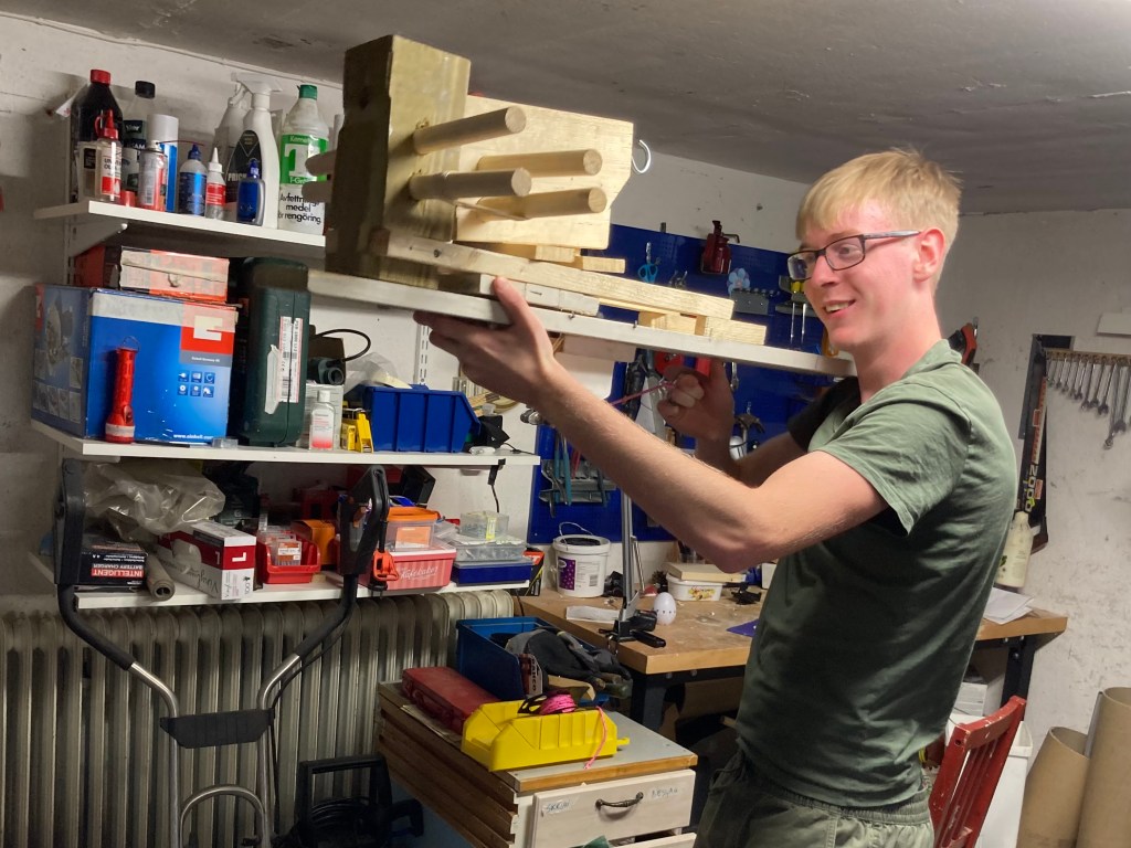 Teknologen Simon har byggt en gummibandskanon.