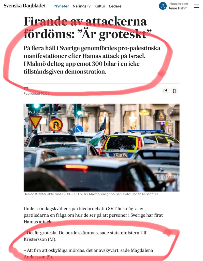 Tillägg: Men det finns också anledning att mana till besinning. Bloggarens krav på att utvisa de som uttrycker sympati för Hamas mördande av judiska ungdomar är att gå för långt. Vi har trots allt yttrandefrihet i vårt land. Men skämmas bör alla de som jublade på Malmös gator och torg.