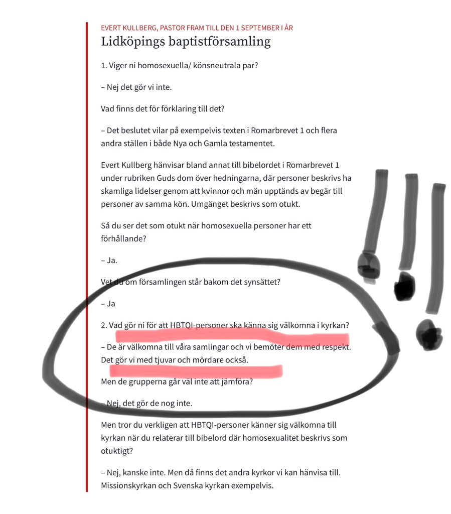 Ett av de samfund som svarar nej är Baptistkyrkan. Där jämställer man homosexuella med tjuvar och mördare!!!
