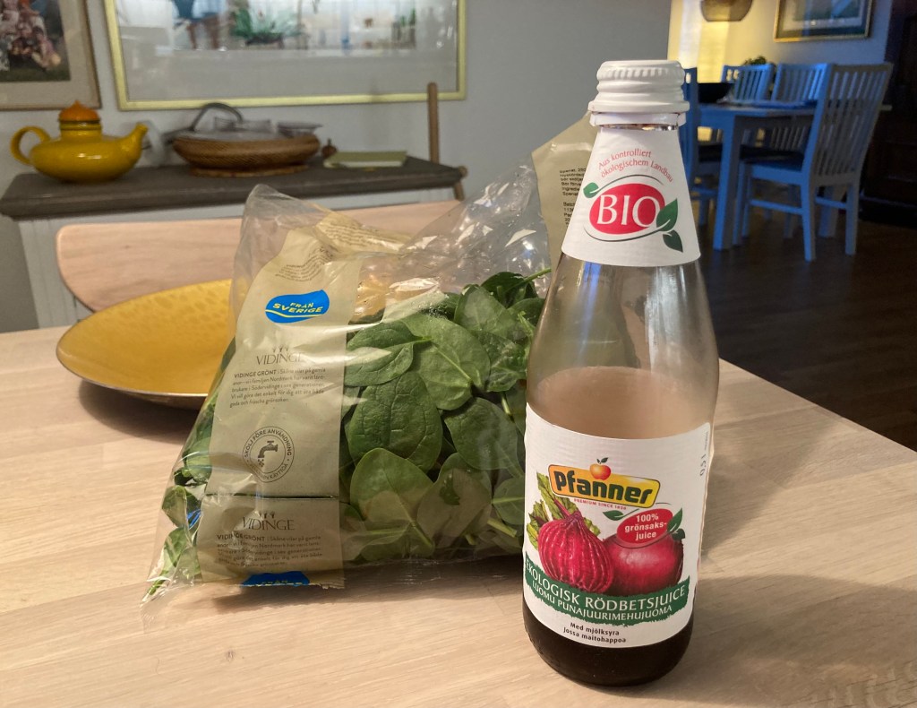 Rödbetsjuice och babyspenat är viktiga ingredienser i vårt kosthåll!