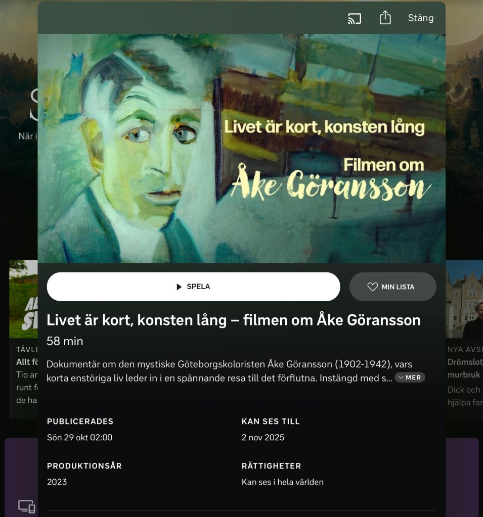 Lars Lerin: ”Det tråkiga med att dö vore att man aldrig mer finge se Åke Göranssons målningar.”