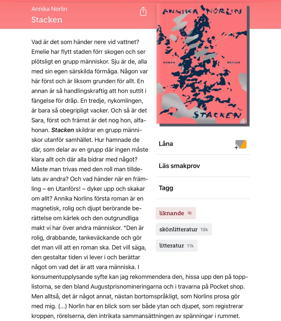 När jag lånade den här boken hade jag just läst ut Skinn, skriven av Sara Strömberg. Och den boken kan verkligen rekommenderas!!