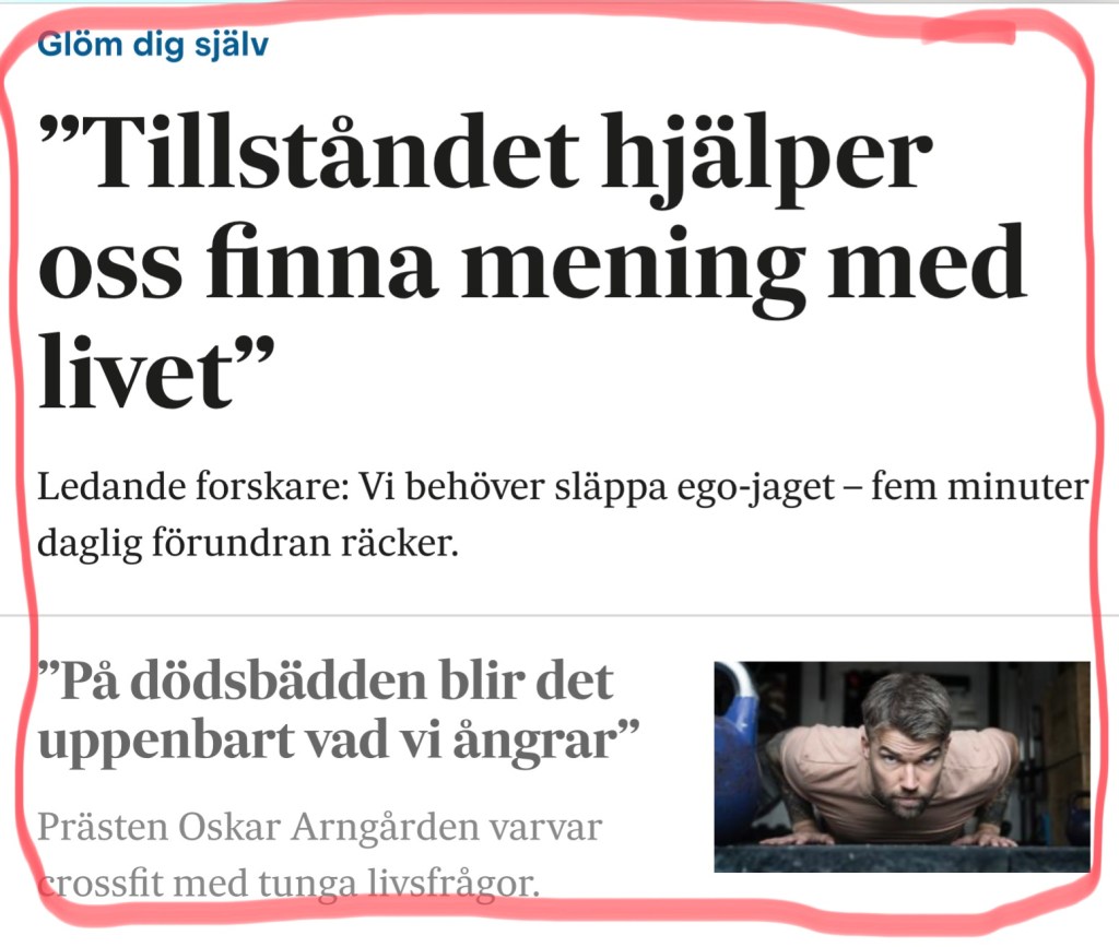 Ida Hallgren, doktorand i praktisk filosofi och leg psykolog ser också en vinst i att flytta fokus från sig själv till något större, att ”glömma sig själv” en stund.