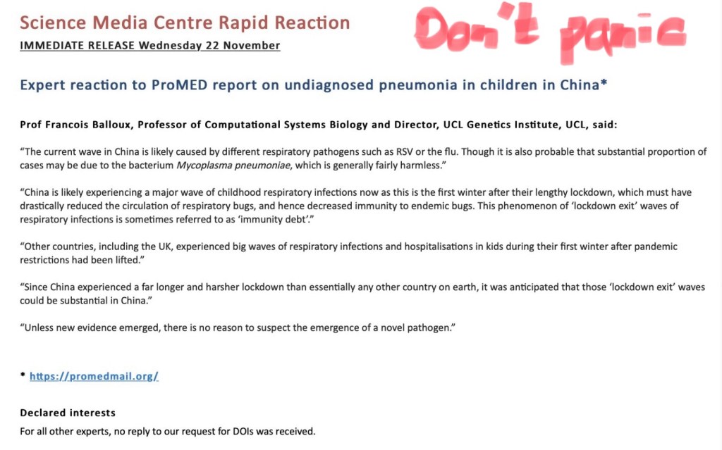Det språk som används liknar det som användes i ett meddelande den 5 januari 2020, innan covid-19-pandemin började.