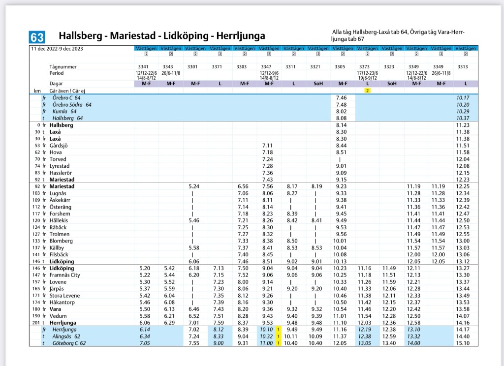 Men det finns en entusiast som på egen hand har tagit fram tidtabeller, bl.a. för linjen Stockholm – Göteborg.
