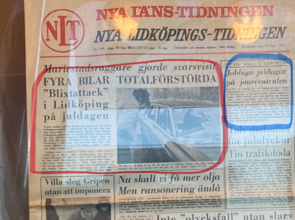 Mariestadsraggarna låg bakom juldagens blixtattack Det bör tilläggas att nyheterna har femtio år på nacken. Dela det här: Dela på X (Öppnas i ett nytt fönster) X Dela på Facebook (Öppnas i ett nytt fönster) Facebook Gilla Laddar in … Relaterade