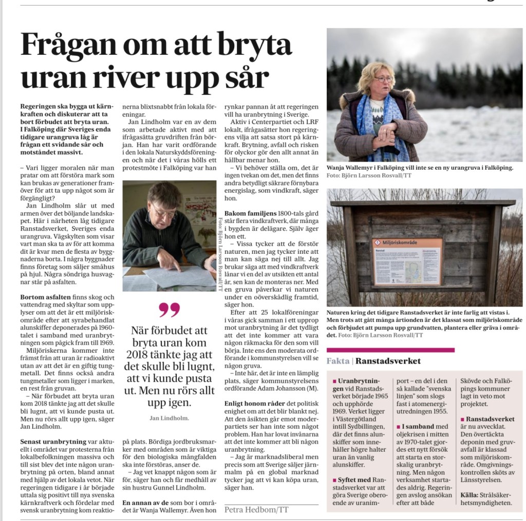 Och i Falköping vill man absolut inte ha någon ny urangruva (som krävs för att få fram ström till elbilarna):