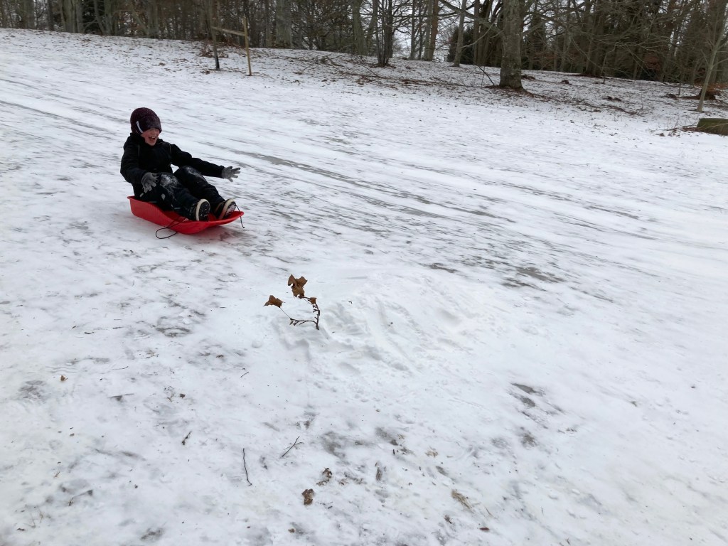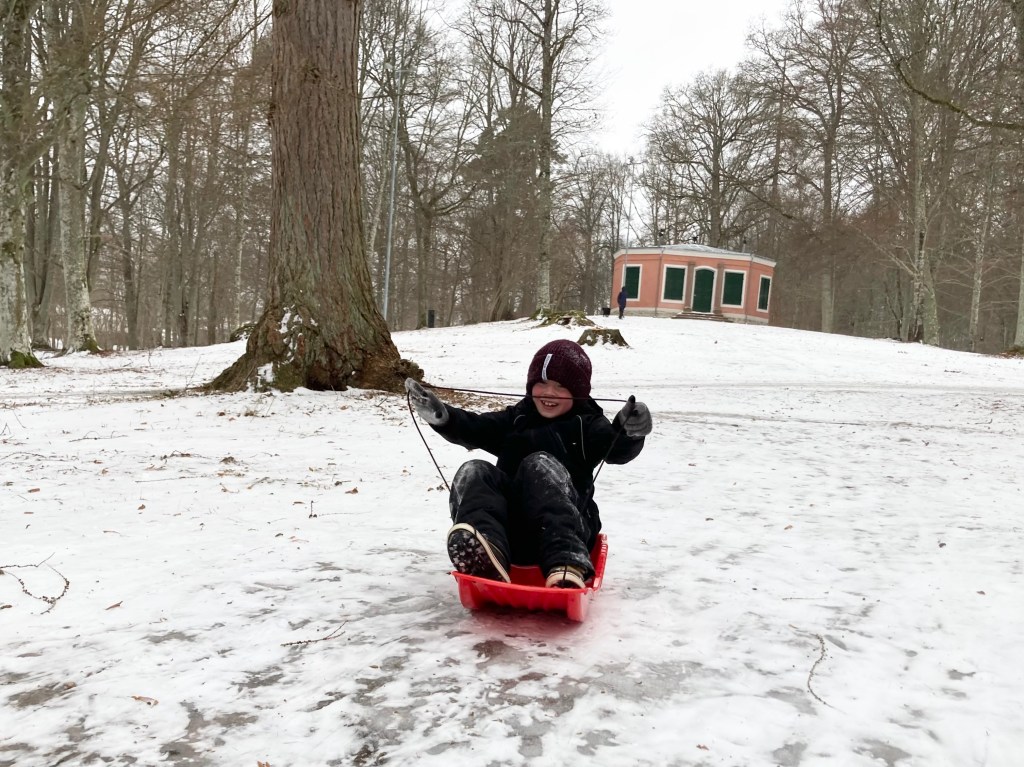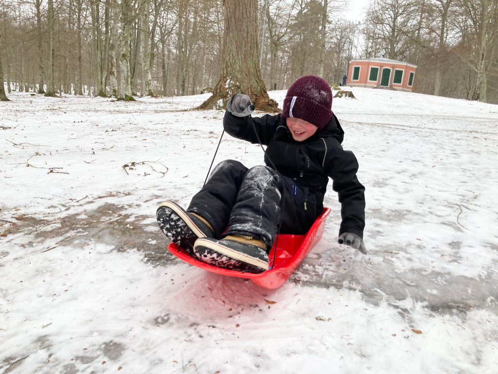 Idag var det Erlands tur att åka utför i den branta och isiga backen i Villa Giacominaparken, och det gjorde han med glädje och stor bravur.