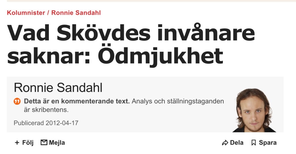 Hans sammanfattning av det som präglar Skövde: Tomhet, dumhet, högfärd och en monumental självöverskattning