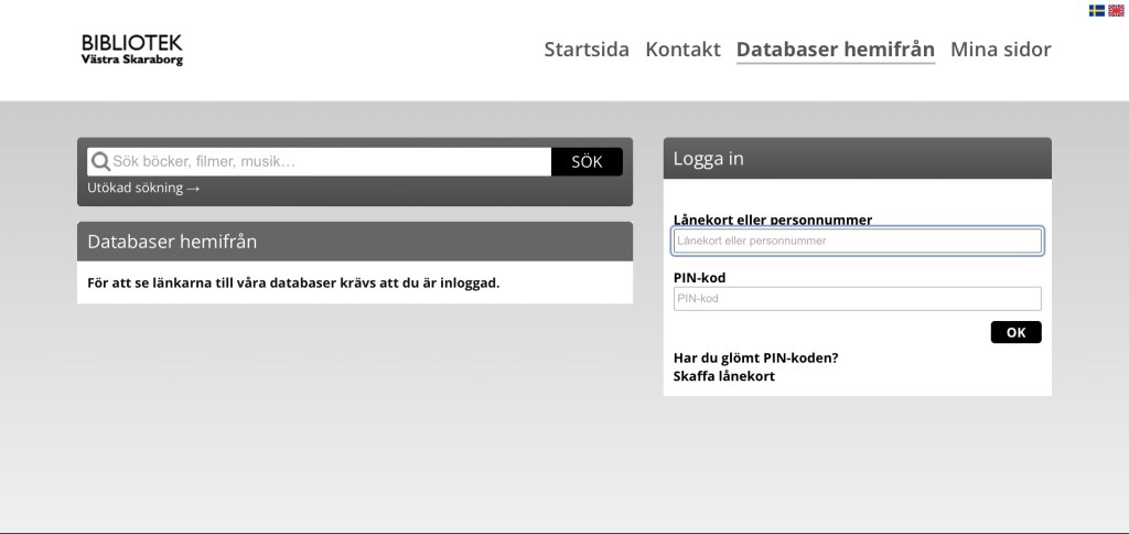 Så här ser sidan där man loggar in ut för oss i Lidköping: