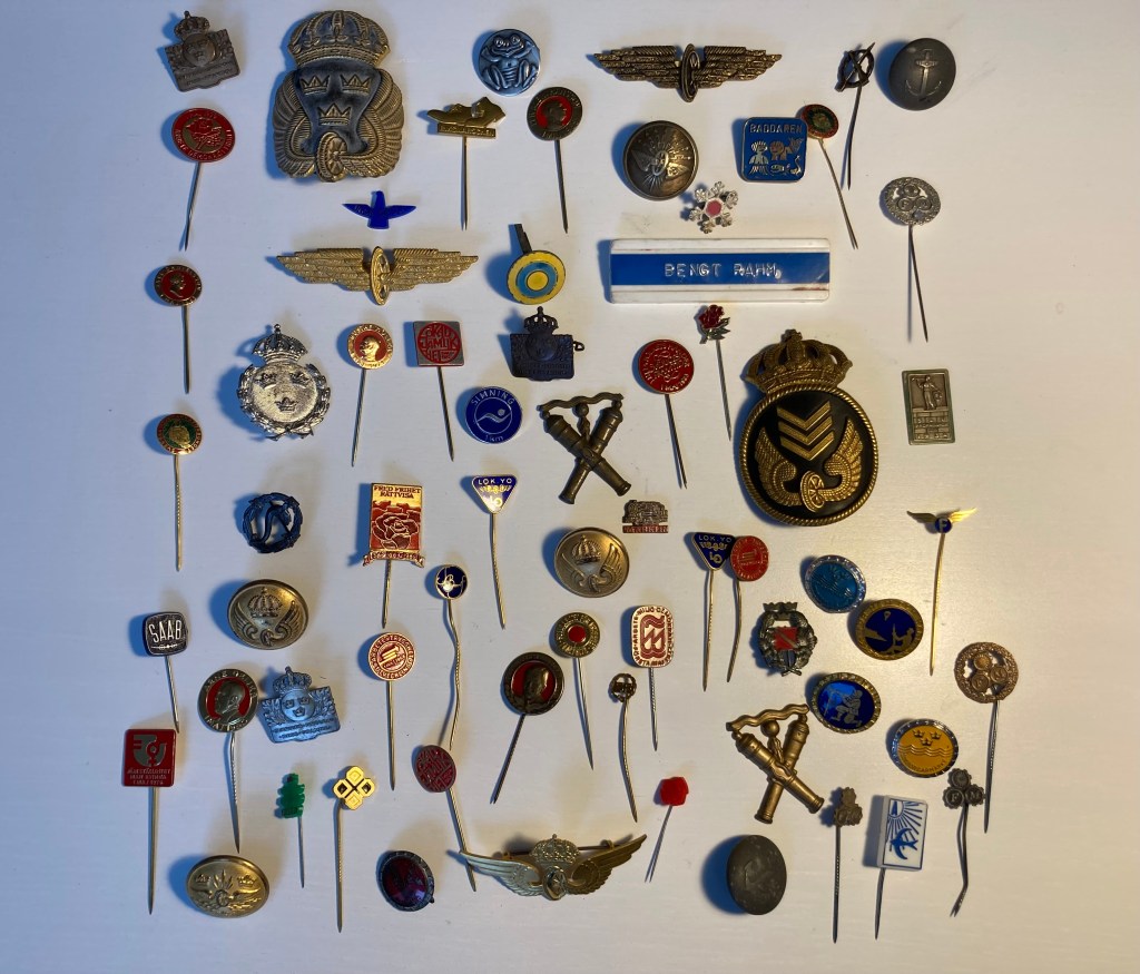 Den innehöll ett antal pins, märken, knappar och emblem.