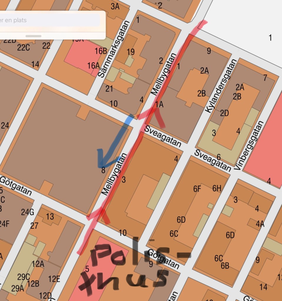 På denna satt det en storvuxen person. Denne man cyklade på trottoaren, mot färdriktningen (enkelriktad gata), i full fart förbi butiksdörrar och gathörn.