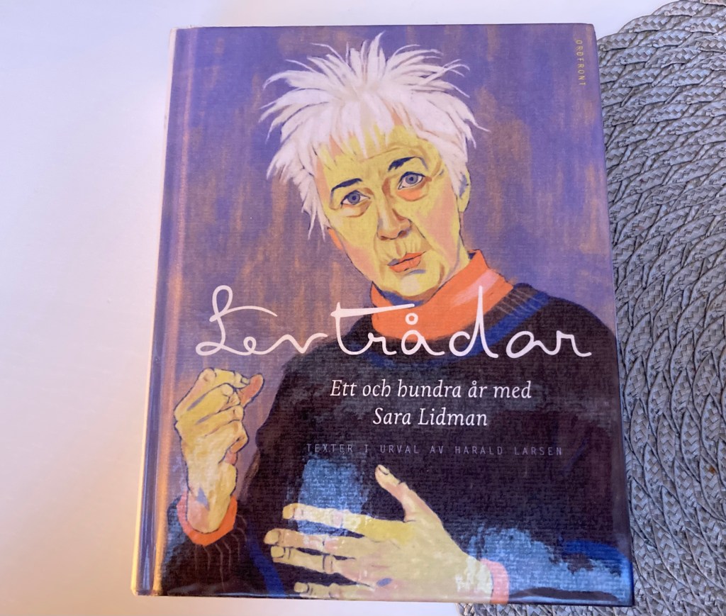 Jag läser Levtrådar, boken med texter av Sara Lidman – från dagböcker, brev, tal och tidningsartiklar.