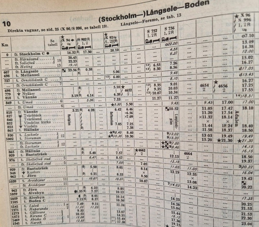 Sara skrev ju Jernbaneeposet, mån som hon var om Norrland och dess tåg, inte minst då tvärbanan Arvidsjaur – Jörn. Tidtabell Norra Stambanan 1976: