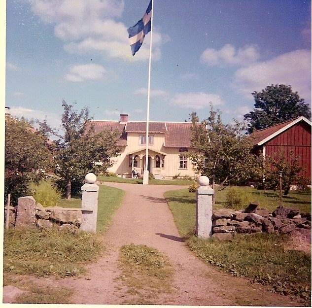 Så här såg Sätunahuset ut när det hade fått en övervåning, och den dag fotot togs fyllde morfar 80! Han sitter där framme på rundelen!