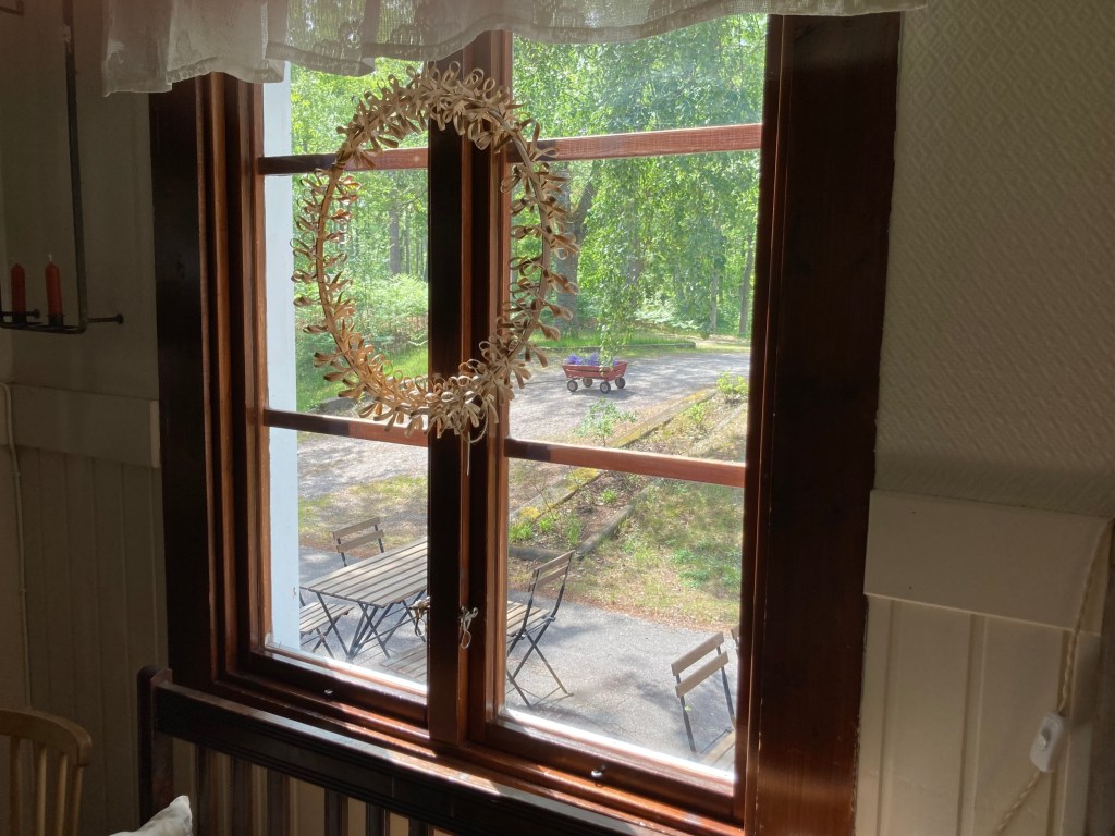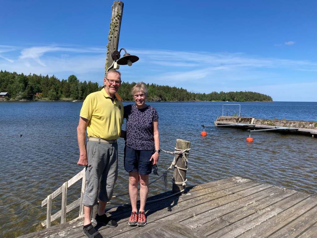 Stallet på Läckö slott var tyvärr stängt. Då for vi vidare till Läckö Strand, och där var det minsann öppet i det gemytliga caféet. Mackorna var riktigt goda, likaså vaniljbullarna. När vi hade gått vandringsleden dök plötsligt min BB-kompis Leif upp (se fotot där han poserar med Anne). Vi brukar ses i de mest oväntade sammanhang. Och vem var det som besökte min mor när hon bodde på Ranliden? Jo Leif såklart😊