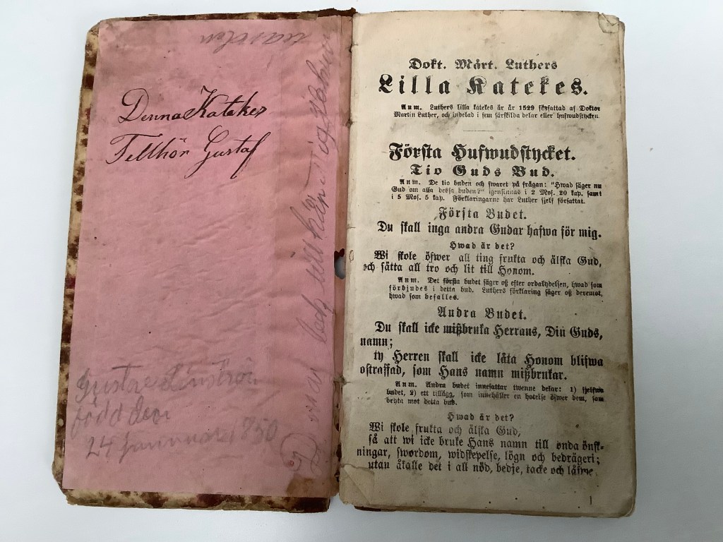 I en byrålåda låg den, min morfar Simons fars (Gustaf Vallentin) Lilla Katekes.