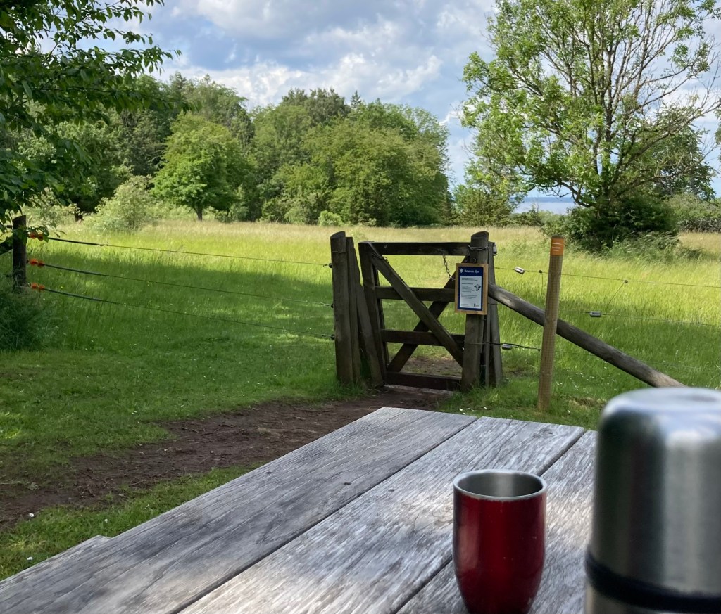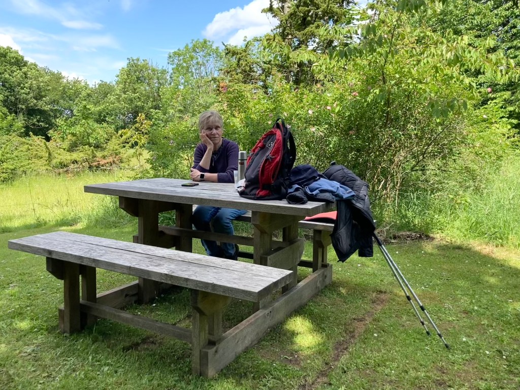Dagens vandring uppe på Blomberg och längs Västerplanaleden bjöd på lite av varje – som en artrik vägren, bligande kossor, fikapaus och (i slutändan) hotfulla moln. Men vi inledde (som vi ofta brukar) med goda mackor på Klostret. Linus hade bakat och Maria stod för pålägget😊