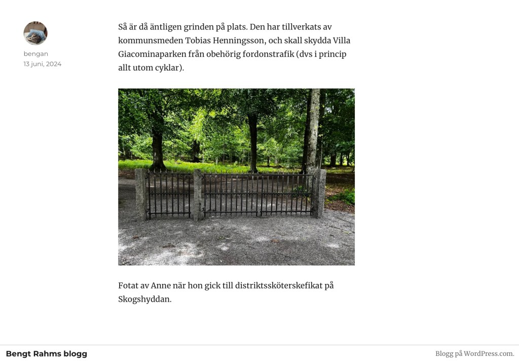 Det gäller att mota Olle i grind, precis på samma sätt som har skett vid en av entréerna till Villa Giacominaparken.