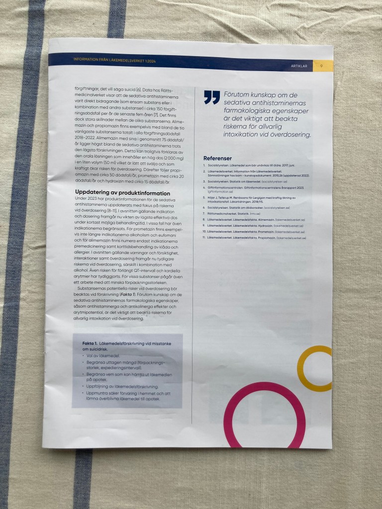 Läkemedelsverket informerar om riskerna med dessa sedativa antihistaminer. De orsakar nämligen cirka 150 förgiftningsdödsfall – varje år