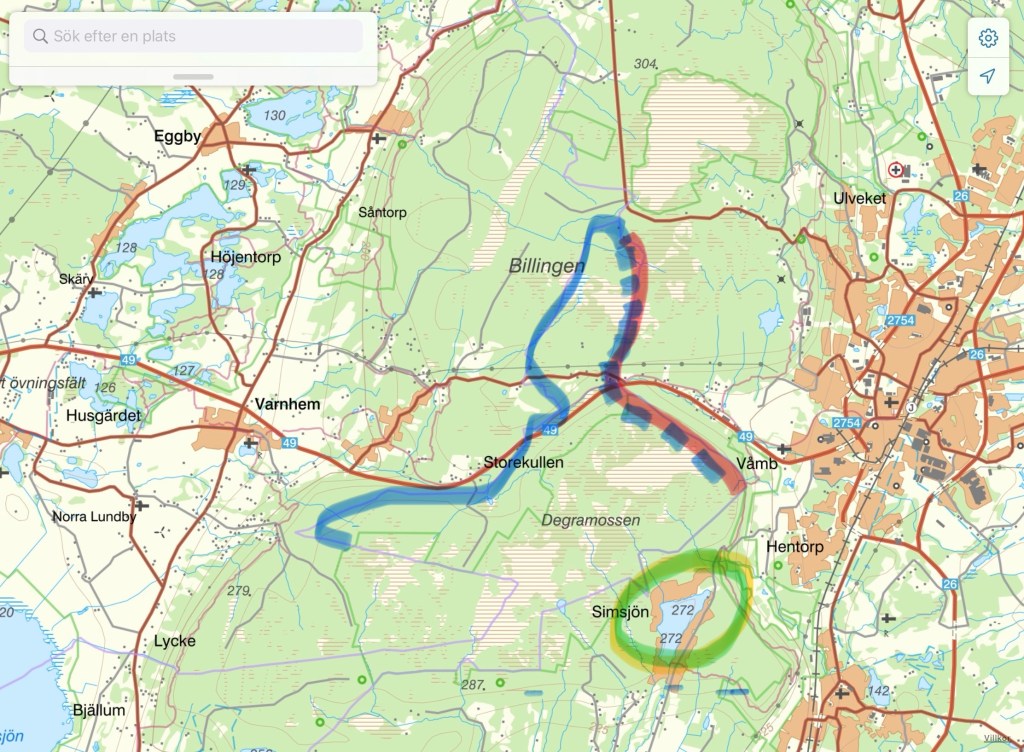Lite märkligt är det att Falköpings kommun gör en liten inbrytning på Nord-Billingen. (Blå linje på kartan).
