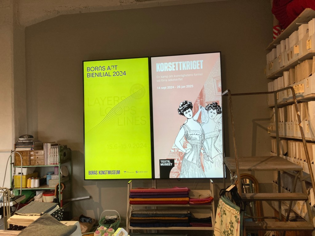 Idag tog vi tåget till Borås. Efter en kort promenad var vi framme i Simonsland där vi klev in på det rosade Textilmuseet. Vi dök på Bob Hund och det påstods att klänningen gör mannen. Men som väl var hade det förmodat olycksbringande korsettkriget inte hunnit bryta ut😊