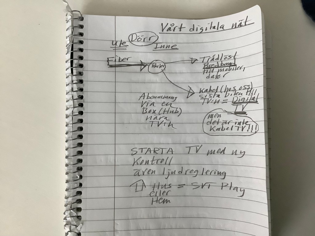 Utifrån det hon har berättat har jag försökt att göra en skiss över hushållets digitala tjänster: