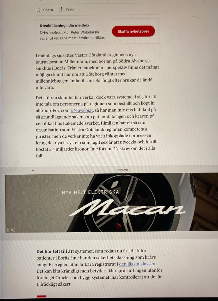 Ledare i DN om Millenium-katastrofen, och om hjälten som helt sonika reste sig och gick Här behöver givetvis ansvar utkrävas, både på politiker- och tjänstemannanivå. Ett inte ringa antal huvuden måste rulla!! Dela det här: Klicka för att dela på X (Öppnas i ett nytt fönster) X Klicka för att dela på Facebook (Öppnas i ett nytt fönster) Facebook Gilla Laddar in … Relaterade