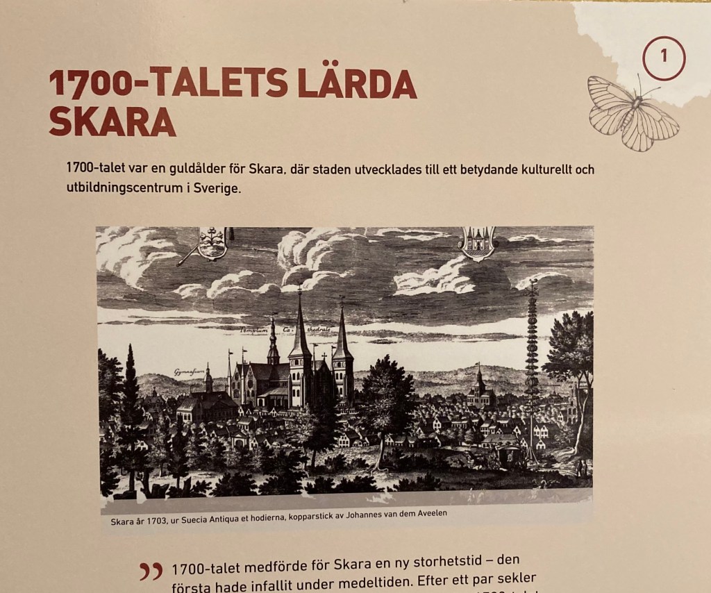 Den succéartade dagen i lärdoms- och kulturstaden Skara inleddes på Café Plaza, mitt emot Domkyrkan. Inne i domkyrkan närvarade vi vid Oratoriekörens repetion inför Världsmusikfestivalens avslutningskonsert i morgon, vi hoppade in på Gamla Biblioteket där utställningen om Västergötlands Linné Clas Bjerkander fortfarande visas, och vi avslutade på Västergötlands museum – med utställning av Angelica Markéns konstverk och ballader framförda av Fornfela, med hjälp av medeltida stränginstrument som fiddla.