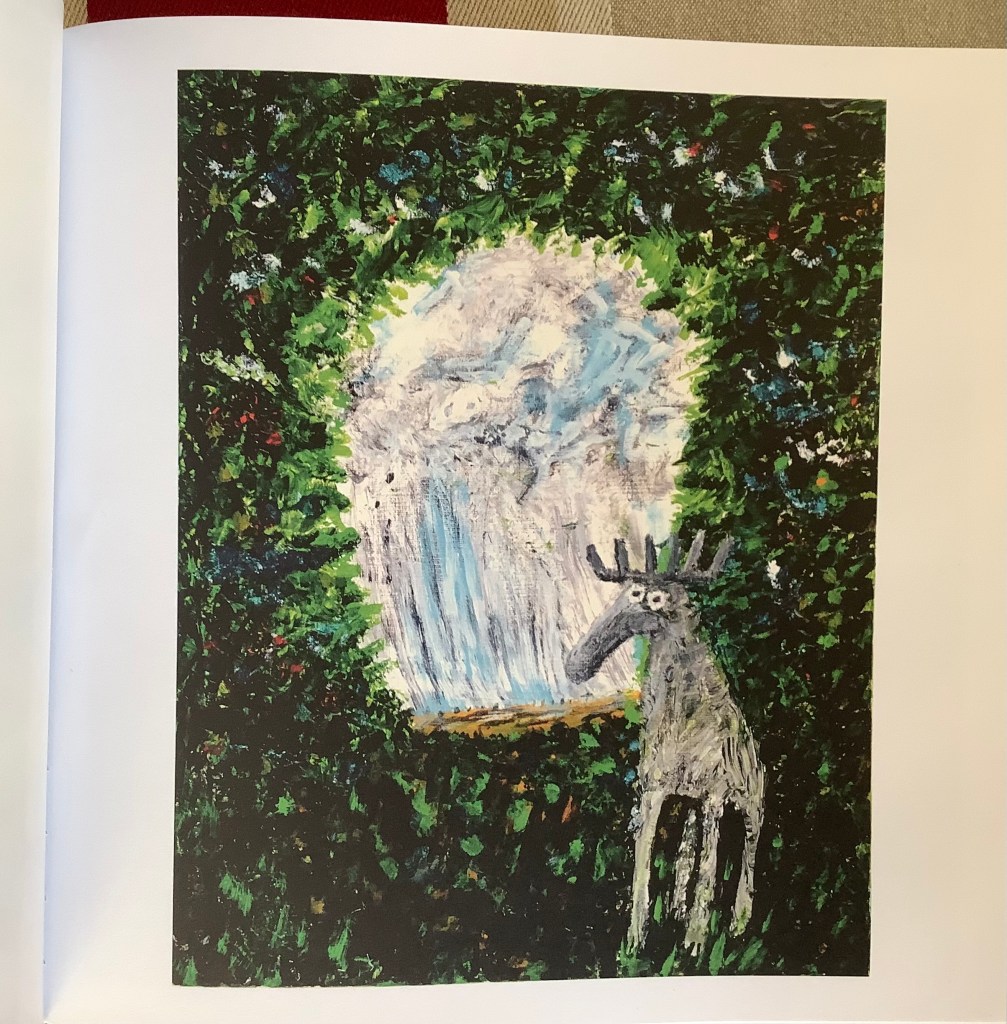 Carl Johan de Geer har försökt efterlikna ett antal andra konstnärers sätt att måla i sin Älgbok, plus att han har lagt till en älg i varje motiv.