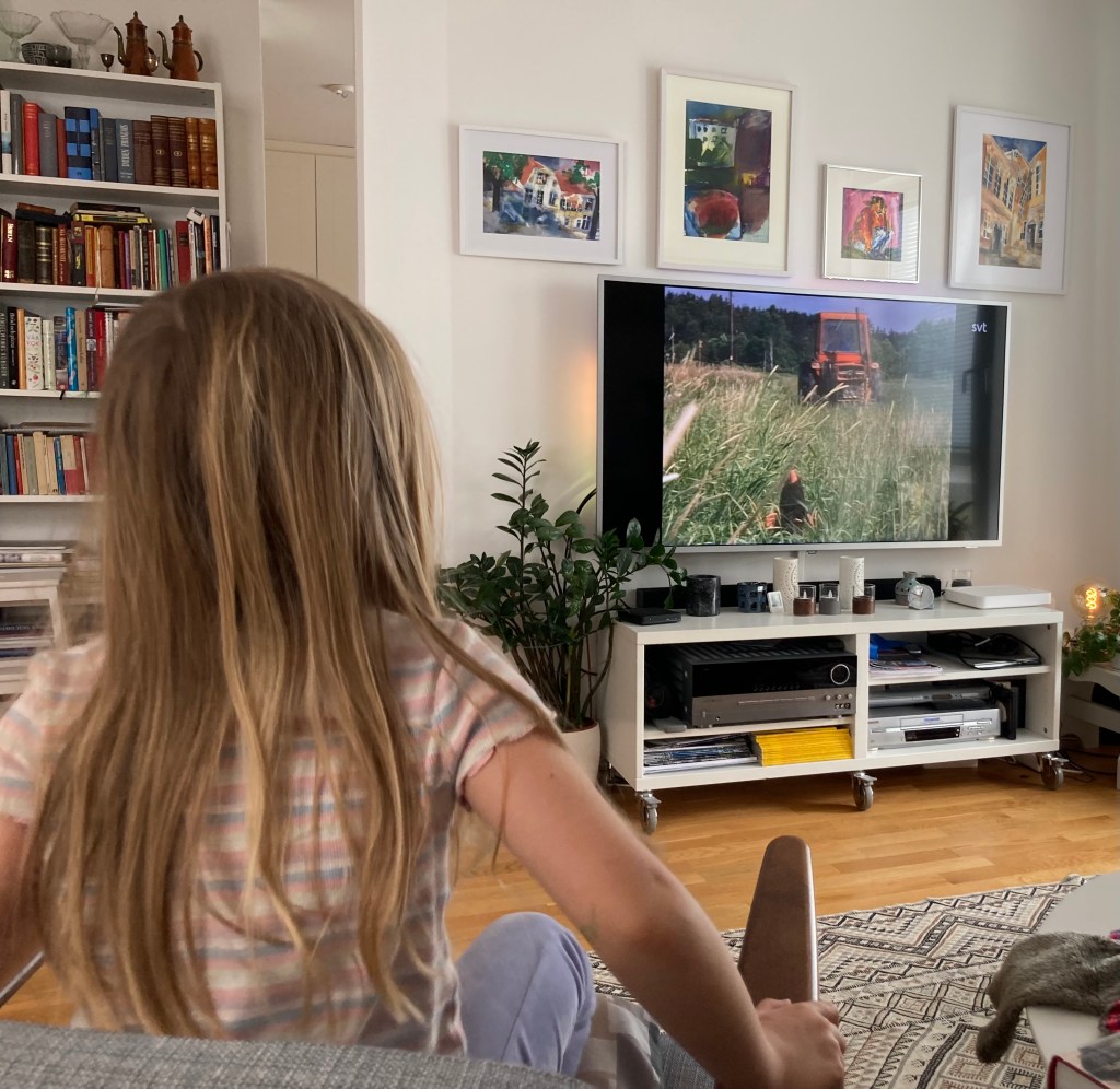 Selma tycker att det är olidligt spännande att titta på Rädda Joppe! Men Missy är måttligt intresserad av den där gamla 80-talsmullvaden🤗