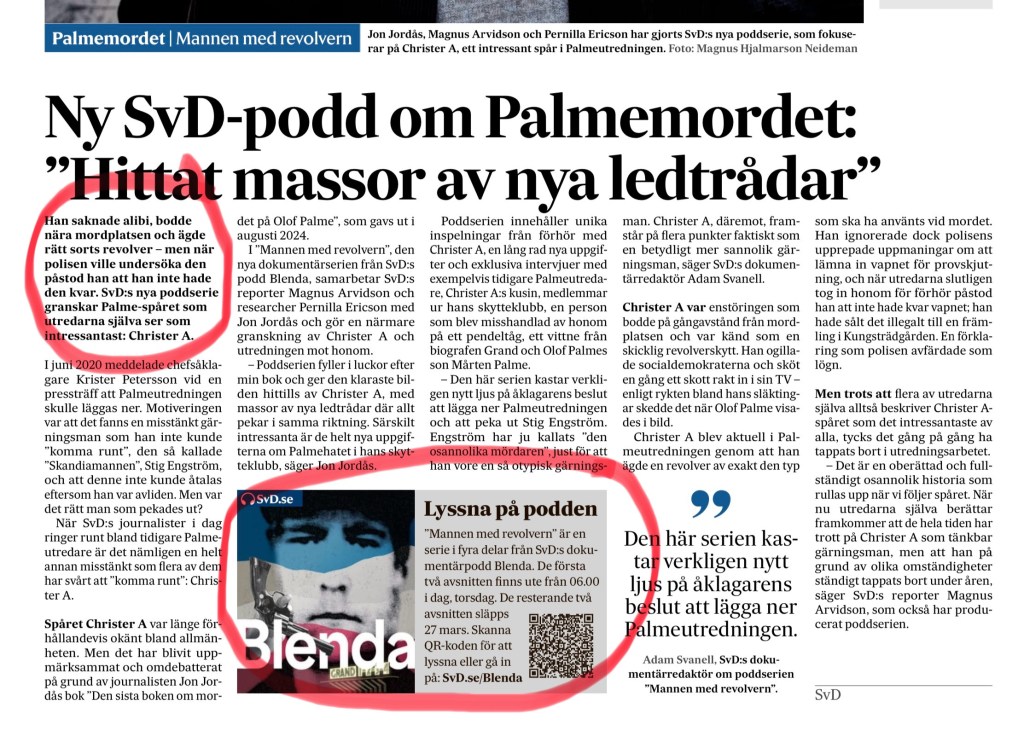 Missa inte podden om den sannolike Palmemördaren, Christer A. Mera kött på benen om den allt annat än osannolike mördaren: https://wpu.nu/wiki/Christer_Andersson Dela det här: Klicka för att dela på X (Öppnas i ett nytt fönster) X Klicka för att dela på Facebook (Öppnas i ett nytt fönster) Facebook Gilla Laddar in … Relaterade