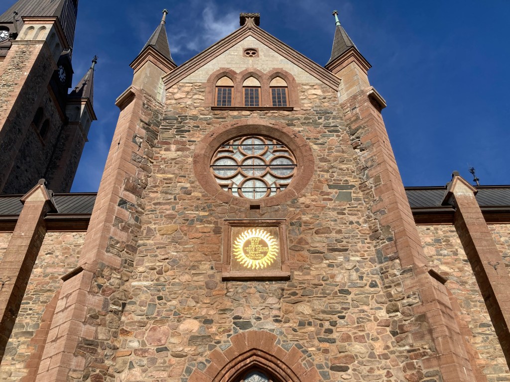 På stationen stötte vi på arbetskamraten Anneli. Hon skulle kolla på en helt vriden revy i Falkenberg, och tog tåget mot Västkusten. Anne och jag tog tåget åt motsatt håll – dvs till Vänerns vackra pärla. Vi intog god makrill på Hedas marint inspirerade kök & skafferi. Vi tog givetvis även en sväng till den vackra domkyrkan. Och en helt utpumpad fotboll fick vi med oss hem från sportaffären. Den gamla Dimbobollen har barnbarnen helt enkelt slitit ut🤗