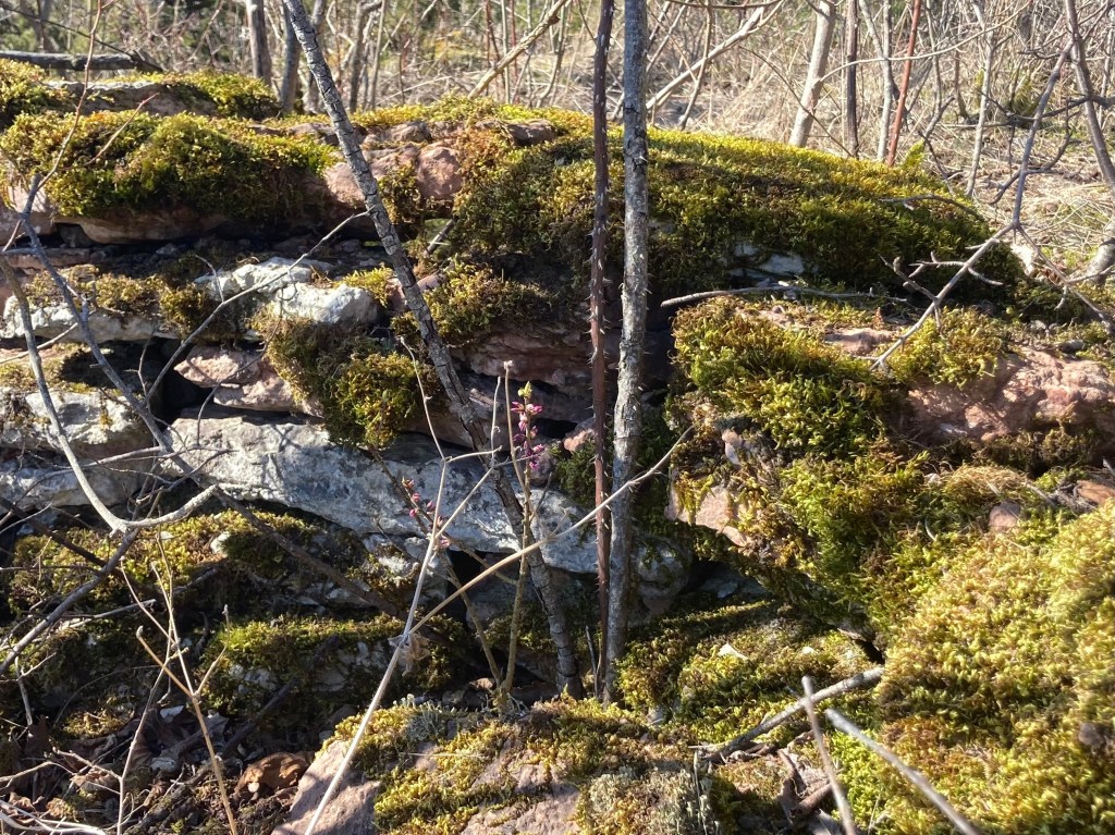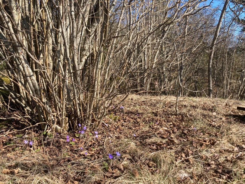 Vinden var isande kall men vi kunde trösta oss med den myckenhet av blåsippor som Kinnekulle har att erbjuda. Och där vi satt och fikade hade vi faktiskt sällskap av en tibastbuske.