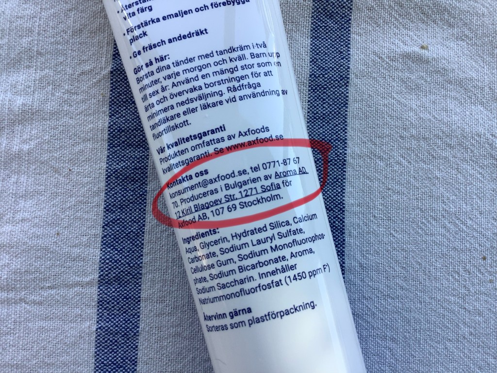 För att inte i onödan stödja Donald Trump, hans skräckvälde i Vita Huset och de amerikanska multinationella bolagen har jag nu inhandlat min första tub med bulgarisk tandkräm (på Willys).