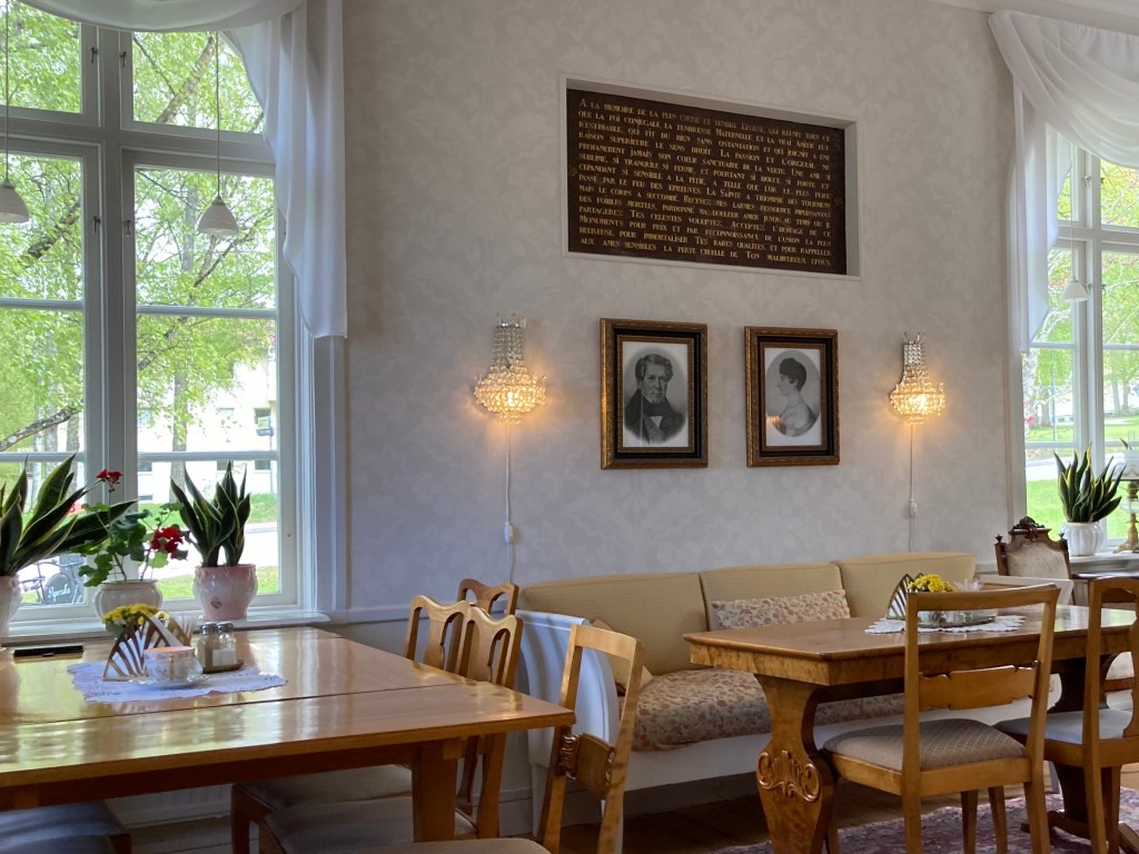 Även dag två på Vårrundan utvecklade sig till en veritabel succé. Vårt sista besöksmål, det hos den 91-åriga konstnärinnan Edna Cers i Sörbo, var mycket givande. Och kaffestunden på Piperska Lasarettet i Lundsbrunn var synnerligen trevlig. Utöver gott kaffe och god bulle fick vi höra Piperskas intressanta historia. Och Gud nåde den stackare som inte var inkommen på sitt rum klockan tio om aftonen! Kestad och Olof Månsgårdens Skafferi ville vi inte missa, icke heller Kollängens Tingshus. Där var temat för i år (på andra våning) byggnadsvård. Bebyggelseantikvarie Anna Lokrantz hade mycket intressant att berätta!!