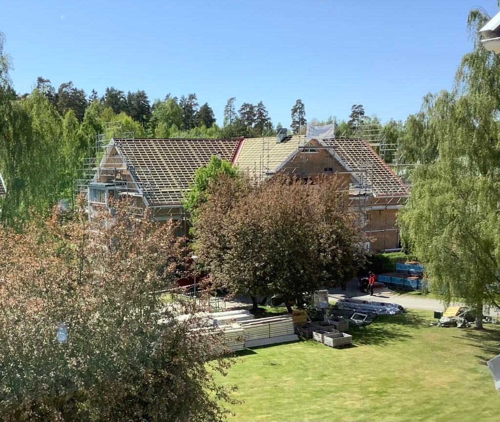 Det är spännande att följa takbytet i vår bostadsrättsförening. I morgon skall de nya takpannorna hissas upp, och börja läggas – på hus 69.