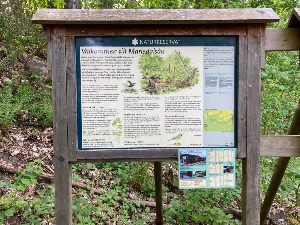 Den som vill kolla på gullpudror och strutbräken bör bege sig till Sörboleden. Men gullpudran är inte särskilt långt kommen. Och den vackra men skygga forsärlan höll sig undan vid dagens vandring. Men i en spegel vid Dala kvarn dök det faktiskt upp en riktig linslus!