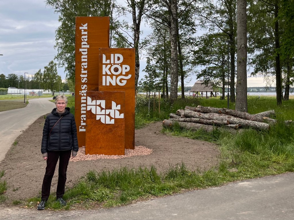 Idag invigdes Lidköpings egen Frihetsgudinna, dvs Eva Hilds skulptur Hold i Framnäs fina strandpark. Hennes farfar var bygdemålare och färghandlare i Tidaholm, och det var han som gav henne mod och kraft att välja konstnärsyrket, istället för att välja den läkarbana som hennes föräldrar hade slagit in på. Verk av Eva Hild finns att beskåda i bl.a. New York, Japan och utanför Konserthuset i Malmö.