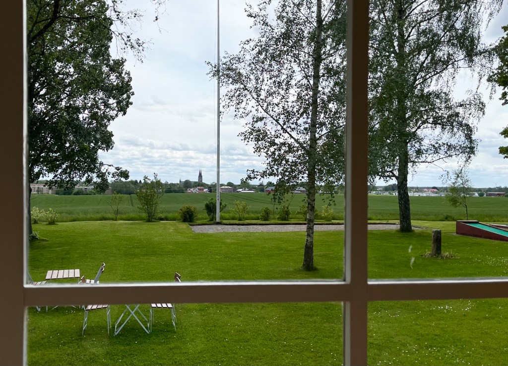 Och denna dag såg där ut på detta vis (från den inglasade altanen i riktning Skaradomen, min och vårt amerikanska barnbarn Sveas dopkyrka):