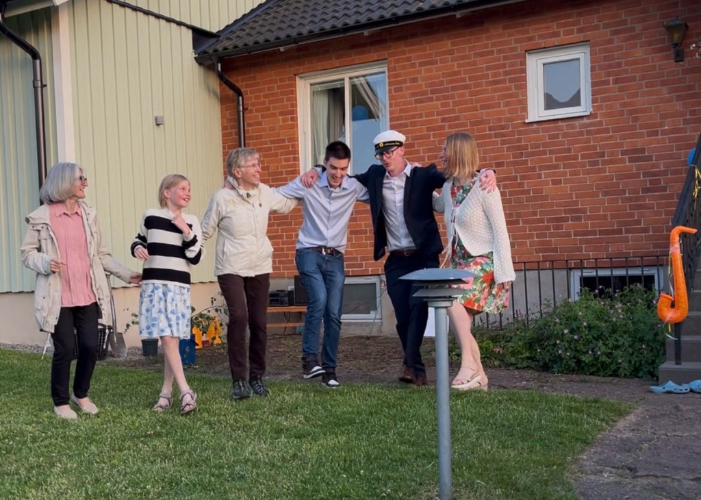 Det är först nu i efterhand som tillfälle har givits till att dyka ned i den digra bildskörden från Simons studentfirande på Blomängsvägen (Isak och farfar har ju sparkat fotboll mest hela dagarna). Missa inte bubbelkorken i det övre högra hörnet på det första fotot😊🇸🇪
