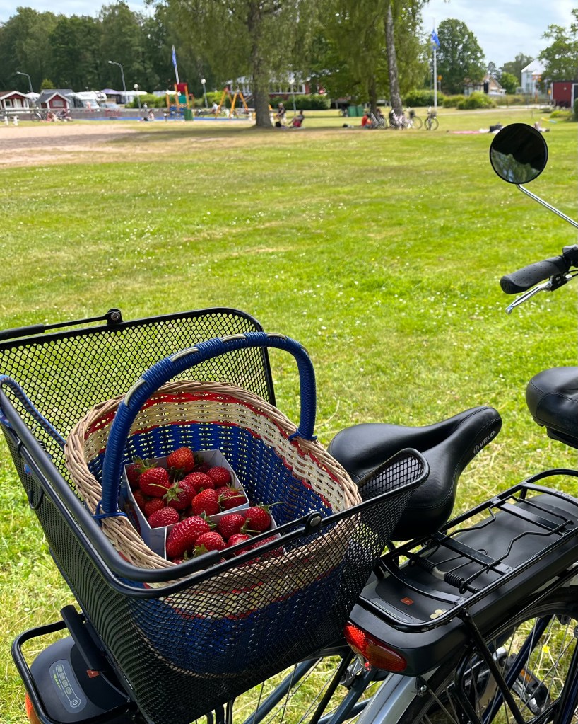 Nu när elcykelbatterierna funkar som de skall är det inte fel att hoja till Edvinsson i Truve, plocka lite jordgubbar och ta en fika i Filsbäck.