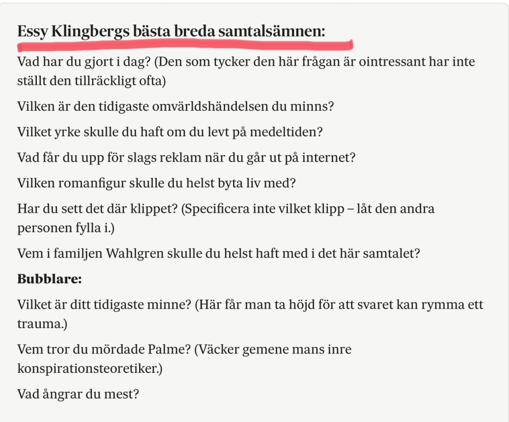 Tips på ytterligare några samtalsöppnare: