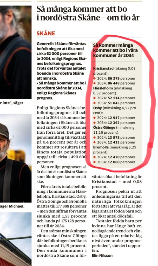 Befolkningsantalet går kräftgång, så även i nordöstra Skåne. Ur dagens Norra Skåne: