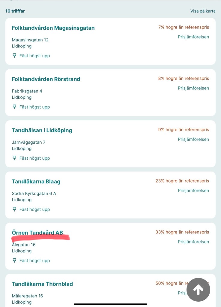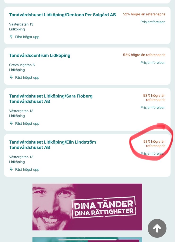 Via den kan man kolla hur alla landets tandläkarmottagningar ligger till vad gäller hur de förhåller sig till referenspriserna.