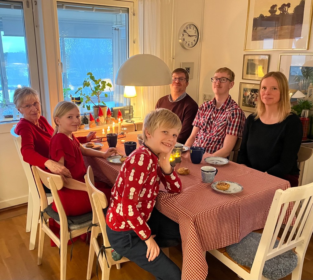 Julfika i Stenhammar. Ungdomarna från Skåne säger plötsligt ”six seven”, och vevar med armarna. Farfar fattar inget. Och tomten skulle ju komma redan vid fyratiden. 😇🤶🏻🎄
