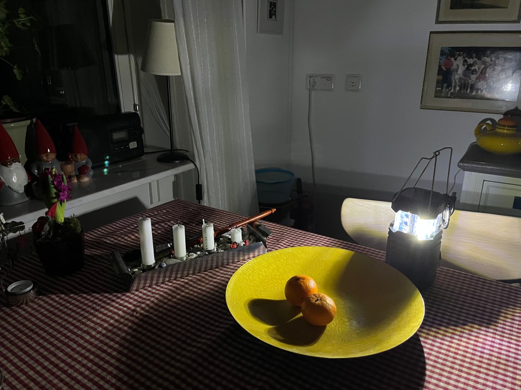 Som väl är har vi en vevbar beredskapslampa. Eftersom den redan var laddad kunde vi skippa vevandet i morse