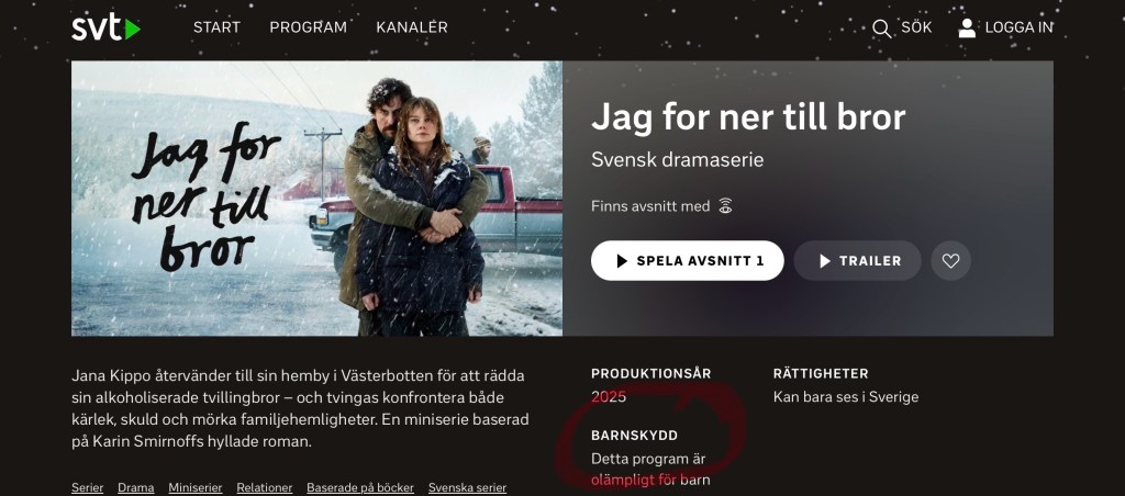Men det finns lysande undantag, som dramaserien ”Jag for ner till bror”.