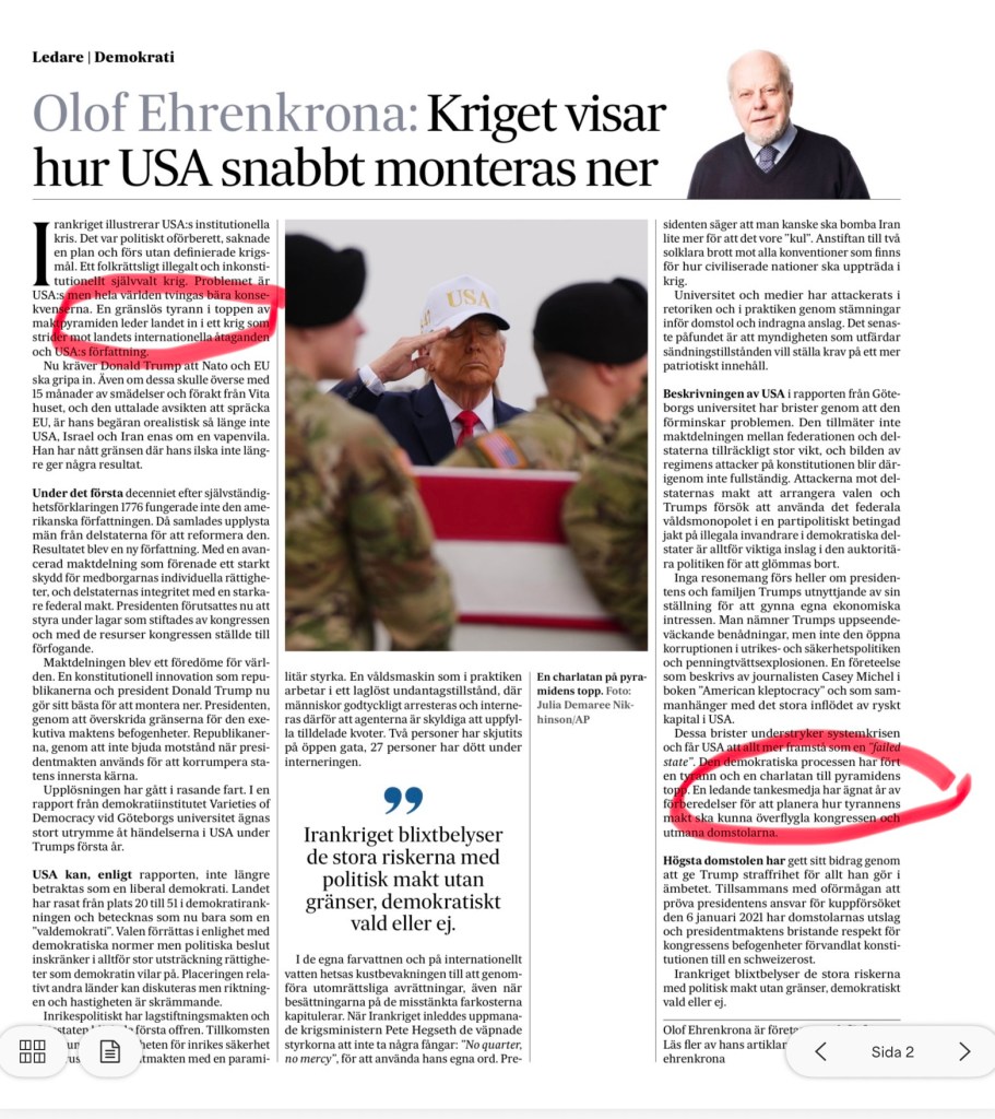 Donald Tyrann Olof Ehrenkronas enastående ledare i måndagens SvD: Dela det här: Dela på X (Öppnas i ett nytt fönster) X Dela på Facebook (Öppnas i ett nytt fönster) Facebook Gilla Laddar in … Relaterade