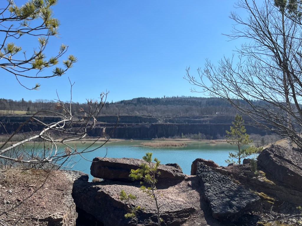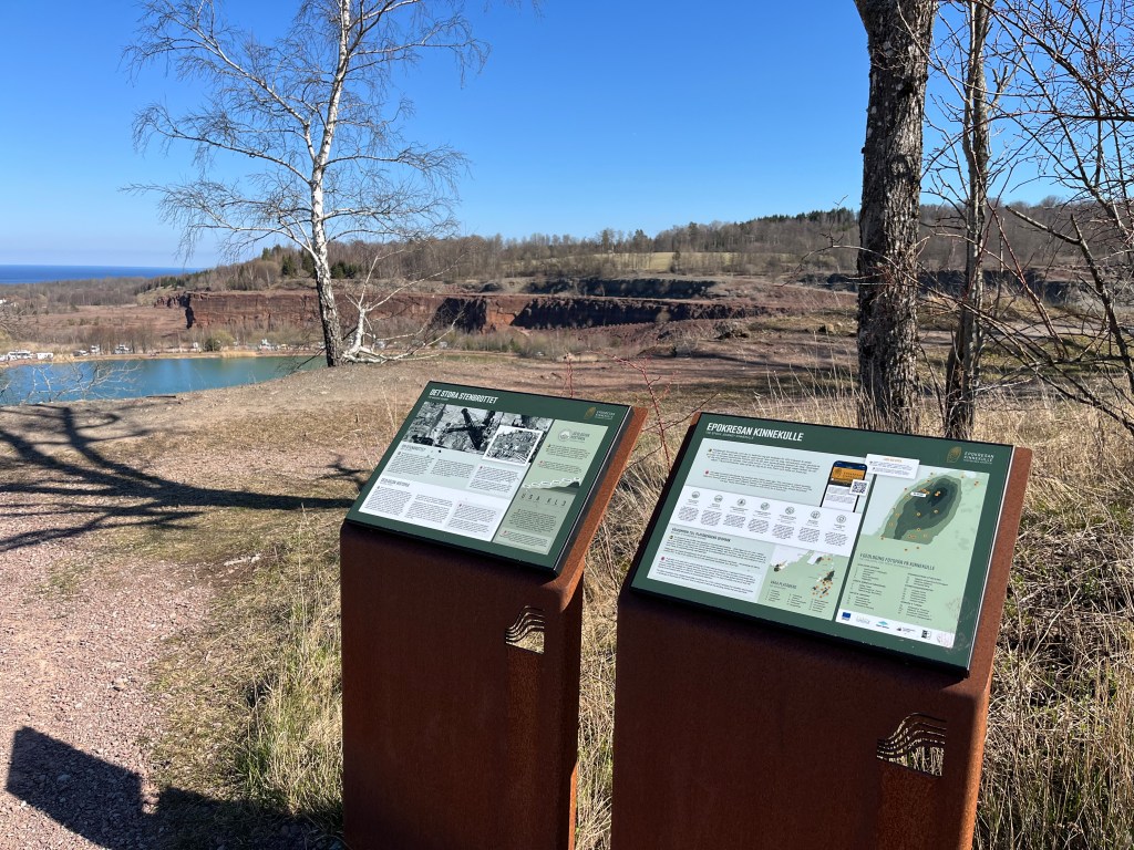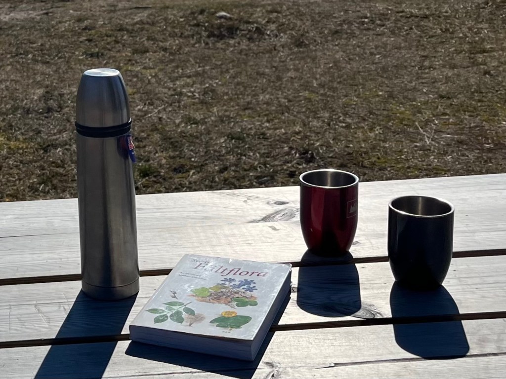 Idag vandrade vi från Råbäcks station, genom Munkängarna och vidare upp till det Stora stenbrottet. Vi mumsade på goda dovhjortsmackor (från Café på Klostret) där uppe på kalkstensplatån. Vinden var dock isande kall och vi såg inte så jättemånga blommor som hör våren till.